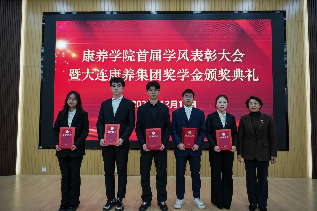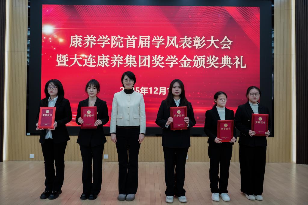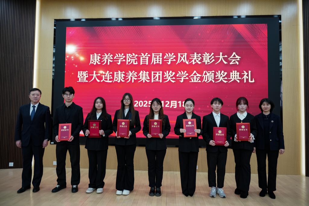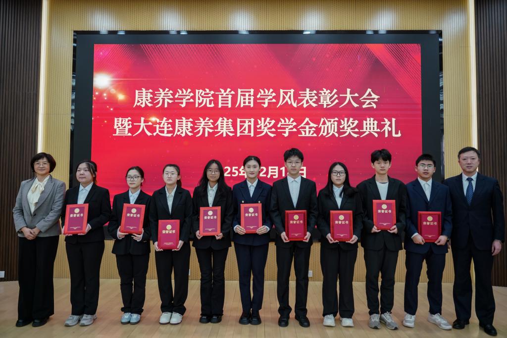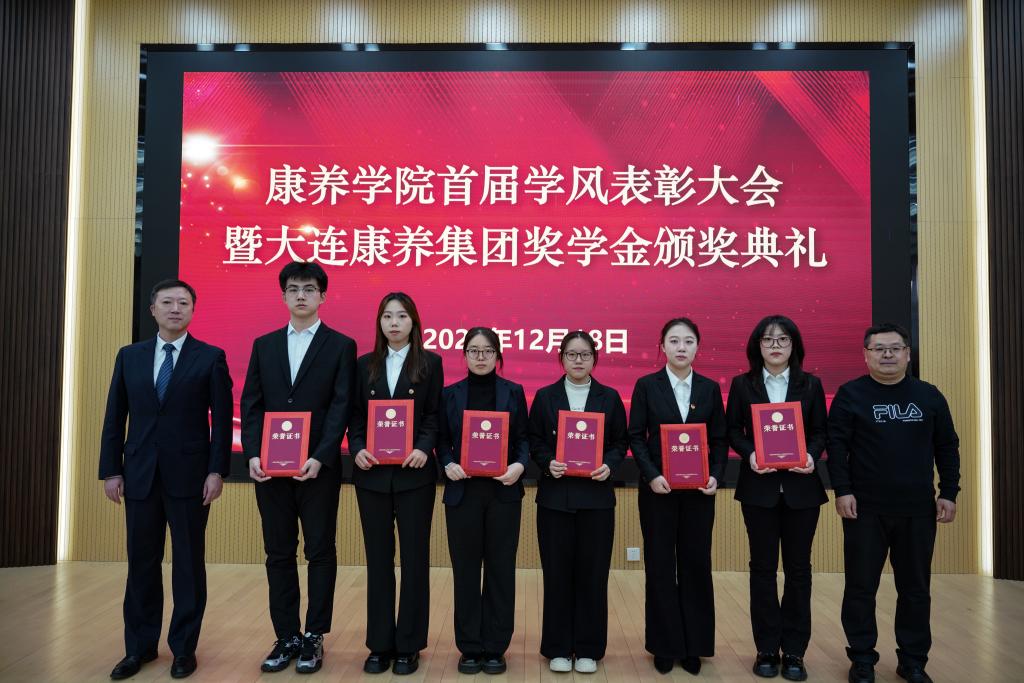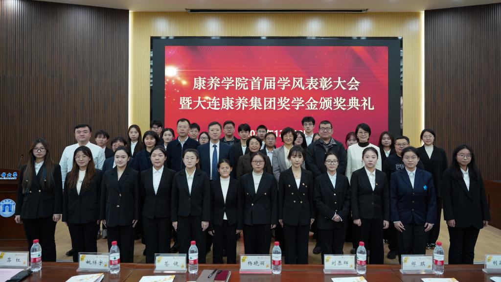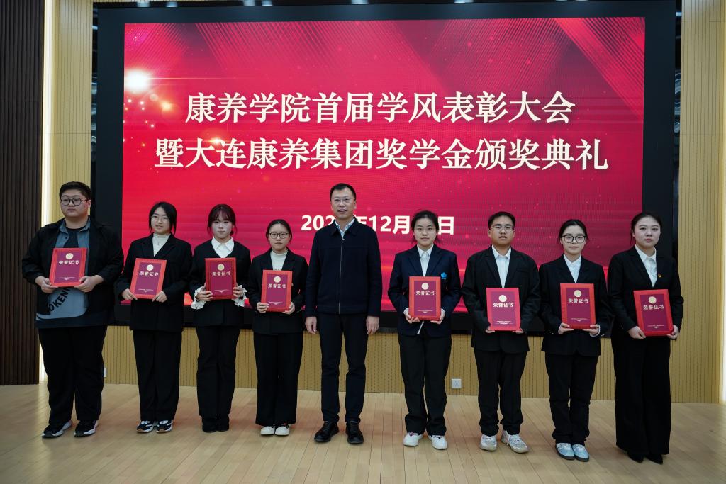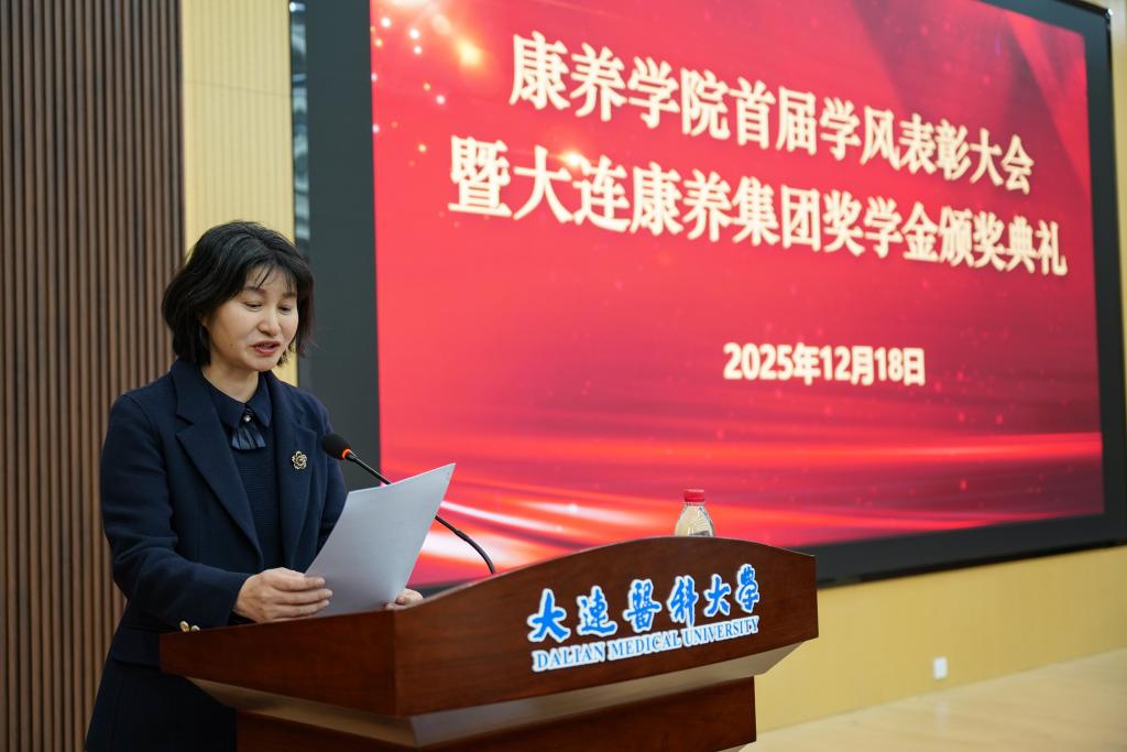 12月18日,康养学院首届学风表彰大会暨大连康养集团奖学金颁奖典礼在科研中心学术报告厅举行。学校党委常委、副校长杨晓丽,党委学生工作部部长、学生处处长苍健,党委学生工作部副部长、团委书记刘恭辉,国际教育学院副院长李晓东,企业代表、大连康养产业集团副总经理姚祥宇,华为公司辽宁产业发展与生态部经理邹琪,以及康养学院领导班子、全体在校师生参加活动。大会由学院副院长沈会主持。