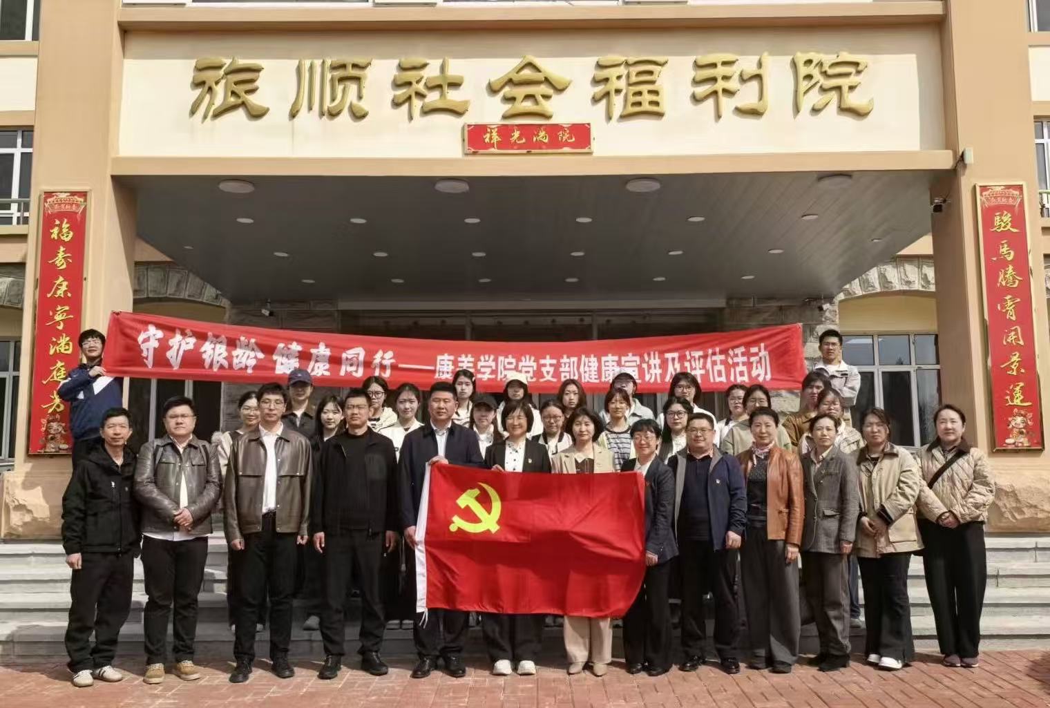 4月3日,康养学院组织全体教师党员及部分学生党员和入党积极分子,走进旅顺口区社会福利院,开展“守护银龄,健康同行”主题党日暨志愿服务日活动,为院内老人送去专业的健康宣讲与贴心的健康评估服务。